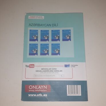 - Arxa cildə mövzular üzrə vizuallaşdırılmış dərslərə keçid barədə məlumat və onlayn sınaq imtahanları üçün www.otk.az ünvanı göstərilib.