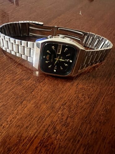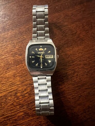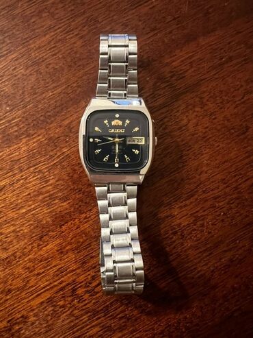 Klassik dizaynlı, qara siferblatlı və metal qolbaqlı Orient mexaniki/kvarts model. Retro üslublu kvadrat korpus və qızılı detallarla fərqlənir. Model kodu arxa qapaqda: 0S46SC704B.