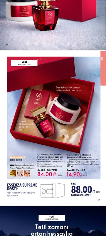 Qeyd: Bütün adlar, həcmlər, kodlar və qiymətlər şəkillərdə göstərilən məlumatlara əsasən təqdim olunur. Telefon nömrəsi daxil edilmir.