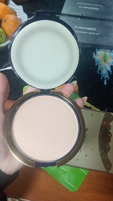 - Oriflame kompakt pudra: Dairəvi qapaqlı qablaşdırma, içində güzgü və süngər üçün bölmə var. Açıq bej/nude ton, dəriyə təbii mat bitiş verir, gündəlik fiksasiya üçün uyğundur.