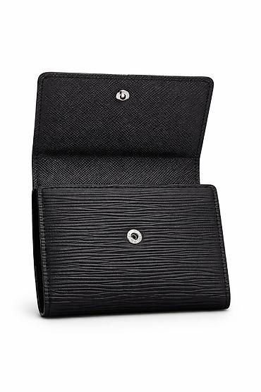 PLs brendi kişi pulqabısı - Material: qara rəngli dəri fakturalı örtük - Dizayn: kompak və ikiqat açılan - İç hissə: hər tərəfdə 3 kart yuvası (cəmi 6 kart üçün), ortada metal klips – kağız pullar...