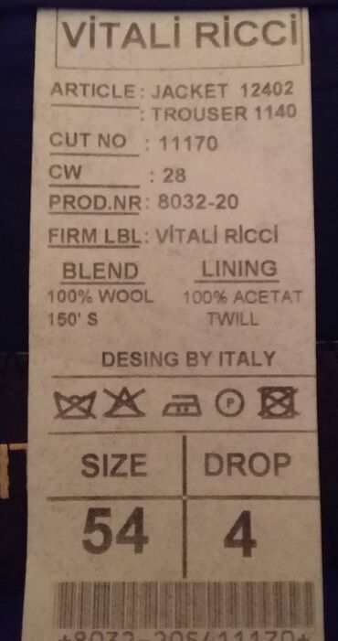 Pierre Cardin kişi kostyumu – klassik nazik zolaqlı dizayn - İki parçadan ibarət: pencək və şalvar - Rəng: tünd (nazik açıq zolaqlar) - Ölçü: 50 - Drop: 6/S - Parça tərkibi: 67% viskoza, 33% polie...