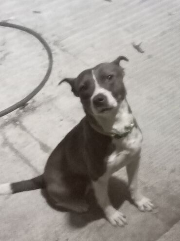 Məhsul: İt (orta-böyük ölçülü, qısa quyruqlı) Təsvir: - Rəng: Açıq-qəhvəyi bədən, üz və sinədə ağ-qara ləkələr - Yaxa və zəncir ilə göstərilib - Orta-böyük bədən quruluşu, güclü ayaqlar, sıx və qa...