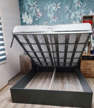 Qaldırıcı mexanizmlu ikinəfərlik çarpayı və döşək, yaxşı vəziyyətdədir.