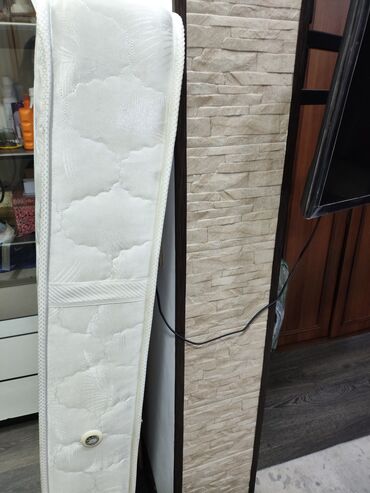 Ortopedik yaylı döşək - Ölçü: təxminən tək nəfərlik (foto ölçüyə uyğun – hündür, standart en) - Rəng: ağ - Üst qat: ziqzaq/“balıksırtı” naxışlı, yumşaq toxumalı parça - Doldurulma: yay sistemi ilə...