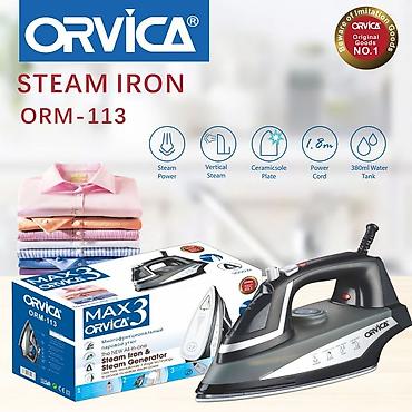Qutuda: ORVICA ORM-113 Steam Iron (MAX ORVICA 3 seriyası). Şirkət nişanlı orijinal məhsul.