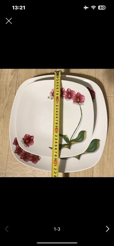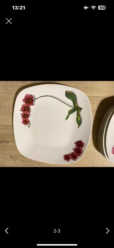 Mətbəx üçün iki müxtəlif qab-qacaq dəsti. 1) Ağ yemək boşqabları - Dairəvi formalı, kənarları dalğalı dizayn - Ağ rəng üzərində narıncı və qızılı naxışlı kiçik bitki motivləri - Eyni dizaynda bir ...