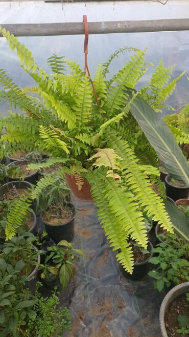 - Qızıl qıl fern (asılqan saksıda) – sıx və iri yarpaqlı. Kölgə–yarıkölgə şəraitini, rütubətli havanı sevir. Yerdən və ya asma qabdan interyerə yaşıl effekt qatır.