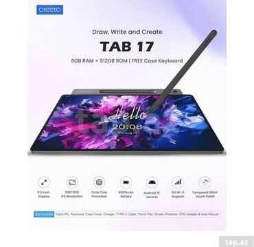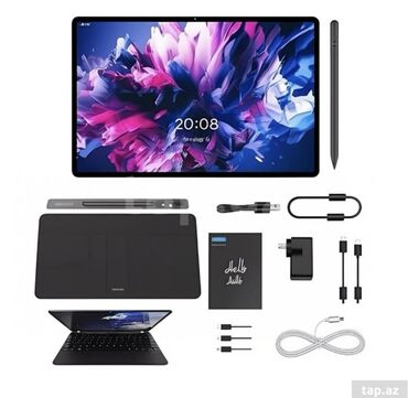Qutuya daxildir: Tablet, Klaviatura, Maus, Kitab-kabro, antiudar, qələm, sənədləri, usb, adapter.
