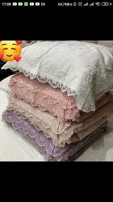 Yun yorğanlar (yenidir, istifade olunmayib) olchusu: 1.45×1.92 / tek neferlik (4 ədəd eyni ağ rengde:1 ədəd 30 azn); 1.90×1.84 (siren rəngi) 1 nəfərlik (böyük) 1 ədəd (30 azn)