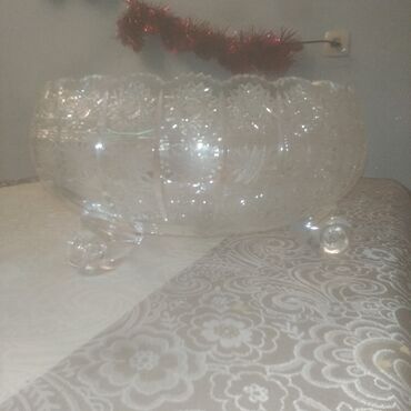 Rusiya xrustalı ,qiyməti 2- si 8 man,təzədir,işlənməyib,qədimidir,diametri 15sm,hündürlüyü 9sm