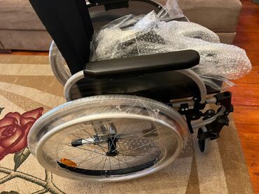 Manual təkərli kreslo - Brend: Ottobock (qutusu görünür) - İdarəetmə: İki böyük arxa təkər və ön fırlanan təkərlərlə əl ilə hərəkət - Çərçivə: Yüngül və dayanıqlı metal konstruksiya - Oturacaq və ...