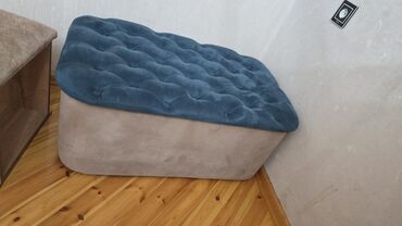 - 1 ədəd puf/oturacaq: gövdə bej, üst hissə tünd mavi kapitone düyməli dizayn.