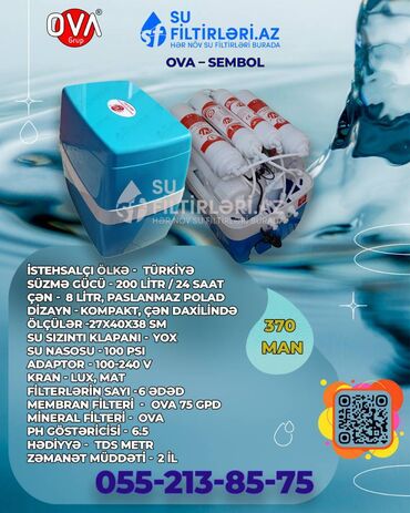 OVA markalı məişət su filtrləri. Çatdırılma və quraşdırılma pulsuz