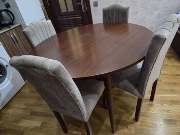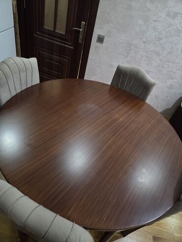 - Yumru yemək masası və 6 stul. Masanın ölçü 120 diametr.