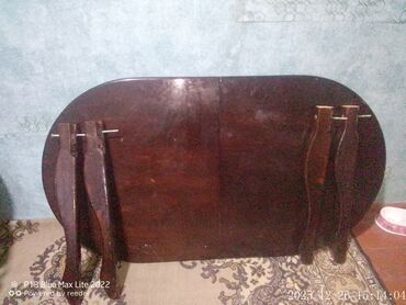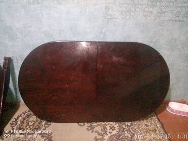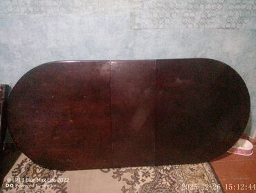 Oval formalı taxta masa üstü və ayaqları 1.52×85; açılanda 1.85×85;hundurliyi 0.75.