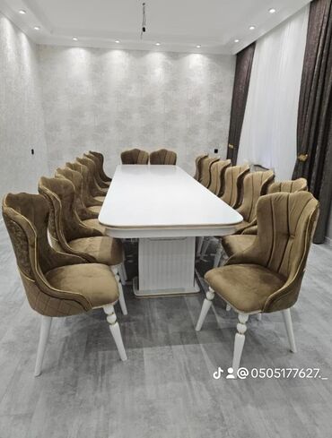 Oval və düzbucaqlı formalı yemək masası və stul dəstləri