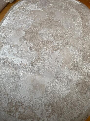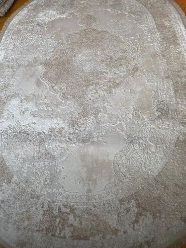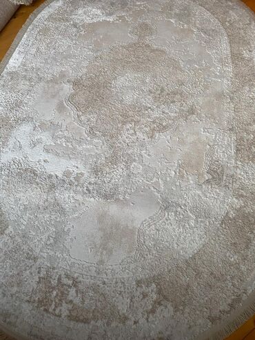 Oval xalça – müasir minimal dizayn - Forma: oval - Rəng palitrası: açıq boz/bej tonları, yüngül marbled effekt - Naqış: incə, asimmetrik xətti geometrik xəttlər - Kənar emalı: tonla uyğun bordür -...