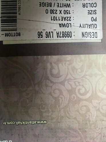 3 eni 4 u - Rəng palitrası: bej, krem və açıq qəhvə tonları; bəzəklərdə solğun qızılı və qızılgül çalarları - Naxış: mərkəzdə medalyon, ətrafında floral və barokko üslublu ornamentlər; kənarlarda ...