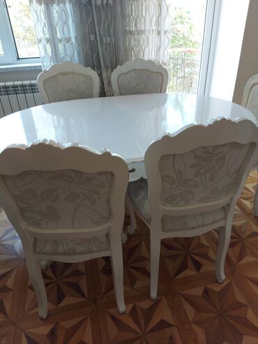 Klassik üslubda ağ yemək masası və stul D 10indir. masasıdı və dəsti.Rumuniya istehsalı rənglənib.