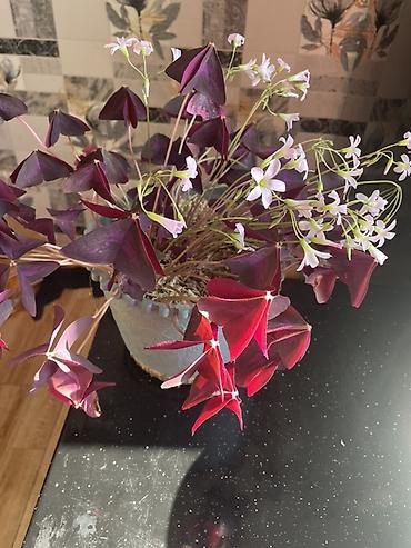 - Növ: Oxalis triangularis, bənövşəyi üçbucaq formalı yarpaqları ilə tanınan otaq bitkisi