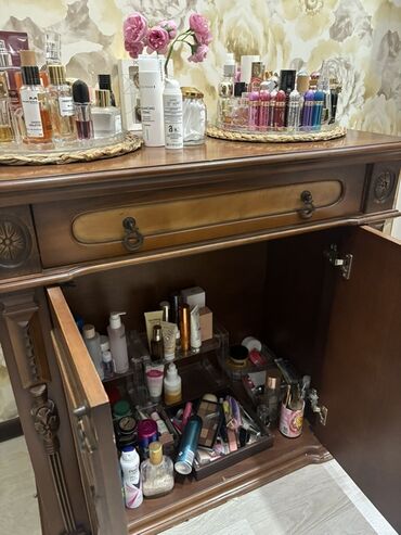 - Yuxarı hissə geniş və düz səth – ətir, kosmetika və aksesuarların səliqəli düzümü üçün