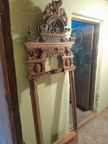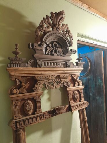 Oyma naxışlı taxta qapı çərçivəsi və üstlük dəsti - Material: təbii ağac (səthi cilalanmış, rənglənməyə hazır) - Dizayn: klassik barokko üslubunda dərin oyma ornamentlər, fırlanan rozet və yarpaq ...