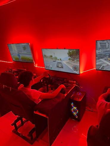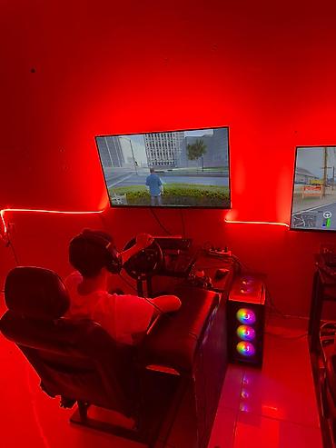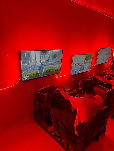 - Peşəkar yarış və sürüş simulyatorları: idman tipli oturacaq, sükan, pedallar və sürət qolu ilə tam set.