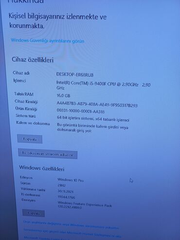 - Prosessor: Intel Core i5-9400F, 6 nüvə, 2.90 GHz