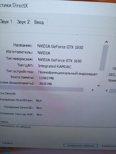 - Qrafik kartı haqqında DxDiag məlumatı: ümumi yaddaş 11582 MB, video yaddaş 3935 MB; DirectDraw, Direct3D və AGP tekstur sürətləndirilməsi aktivdir.