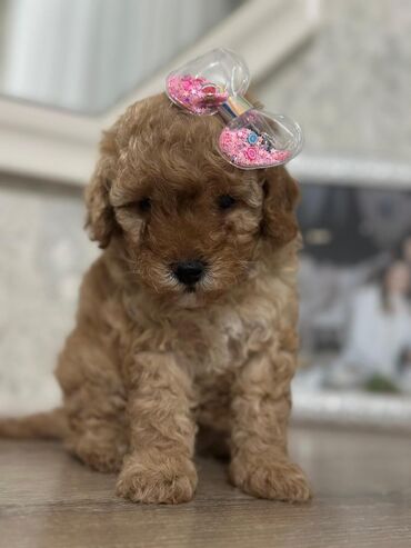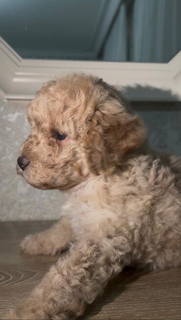 Sevimli, kiçik ölçülü, tüklü it balası - Cins: xırda ölçülü dekorativ (pudellə oxşar, qıvrım/tüklü) - Rəng: krem-açıq bej, qulaqlarda daha tünd çalar - Xüsusiyyətlər: yumşaq, sıx və hipoallerg...