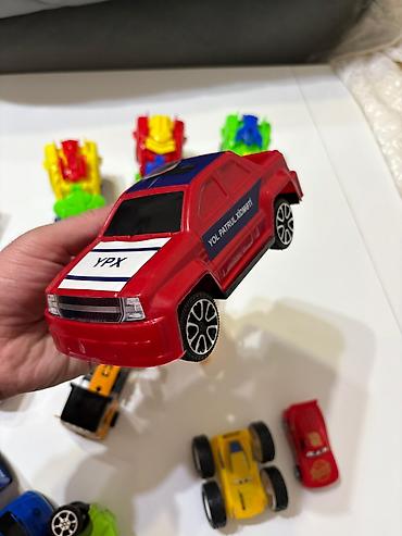 - Qırmızı, mavi, yaşıl-sarı rəngli transformasiya tipli maşın/robot fiqurları