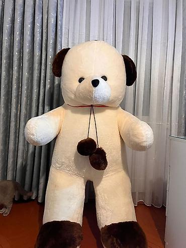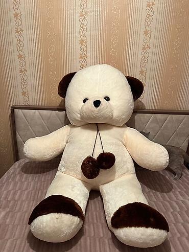 Böyük ölçülü yumşaq oyuncaq ayı. - Rəng: krem/boz-ağ - Material: yumşaq plyuş, içlik – sintepon - Üz xüsusiyyətləri: qara parlaq gözlər, qəhvəyi burun - Təxmini ölçü: iri ölçü (praktiki olaraq ins...