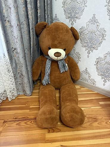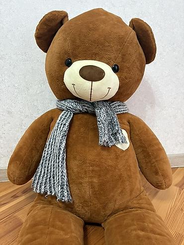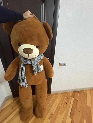 Nəhəng yumşaq oyuncağ ayı - Rəng: krem rəngi gövdə, tünd qəhvəyi qulaqlar, pəncələr və bəzək detallar - Boy ölçüsü: çox böyük ölçülü, insan boyuna yaxın (şəkildə göründüyü kimi) - Material: yumşaq...