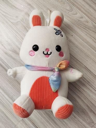 Məzəli dizaynlı yumşaq oyuncaq – qulaqcıqlı dovşan kostyumunda fiqur. - Parça: yumşaq plyuş korpus, plastik üz və ayaqlar. - Ölçü: təxminən kiçik/orta boy (uşağın əlinə rahat sığır). - Geyim: zola...