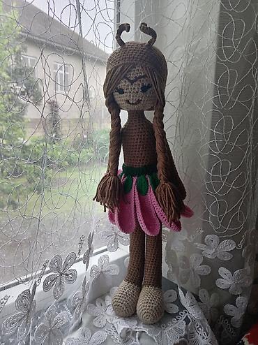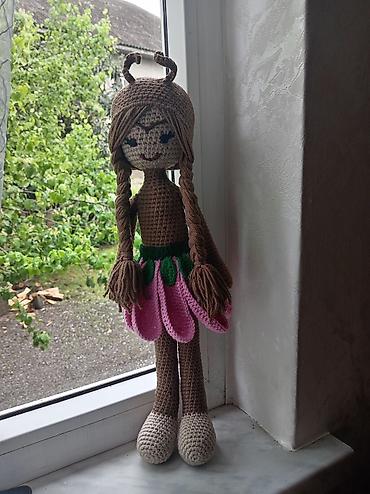 Amigurumi toxunma kukla - çatdırılma var Əl işi toxunma amigurumi kukla - Yumşaq ipdən hazırlanıb, içliyi yüngül və formaya saxlayan materialdır - Uzun qəhvəyi saçlı, rəngli bant aksesuarı ilə - A...