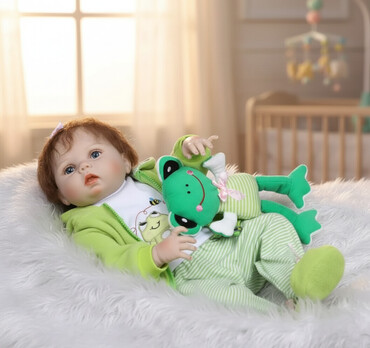 Məhsul Təsviri: Qurbağa Temalı Geyimli Gerçək Görünüşlü Kukla