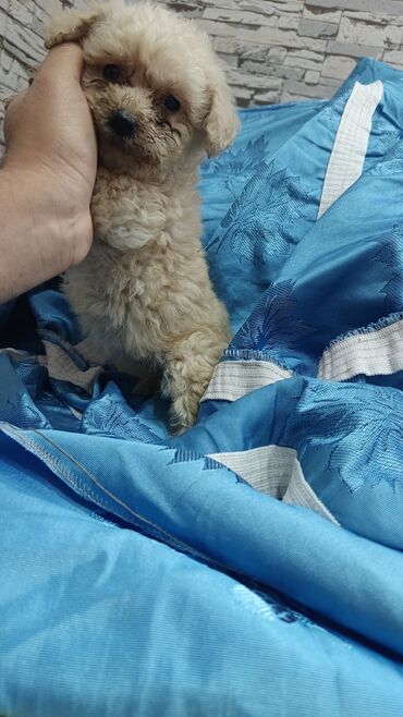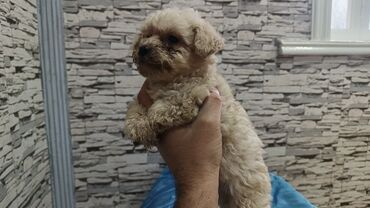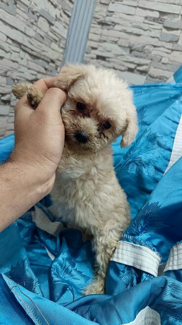 Balaca, krem rəngli, qıvrım tüklü it balaları. Cins: oyuncaqlıq tipli (toy) – kompakt bədən quruluşu, yumşaq və hipoallergenə yaxın tük örtüyü, az tökülən yun. Şirin, yumru sifət, qara burun və iri, ifadəli gözlər. Ev şəraitinə çox uyğun, sakit və mehriban xasiyyət; uşaqlarla və mənzildə yaşamaq üçün idealdır. Asan öyrədilir, ağıllı və oyunsevərdir. Gündəlik qısa gəzinti və interaktiv oyuncaqlarla aktivlik tələbi azdır. Baxım: mütəmadi daraqlama, göz-köndələn axıntılarını silmək, periodik yuma və dırnaq kəsimi tövsiyə olunur. Keyfiyyətli quru yem və ya balanslı rasionla qidalanma məsləhətdir. Şəkillərdə bir neçə balacanın görünüşü təqdim olunub. Ev heyvanı axtaranlar üçün səliqəli, mehriban və kiçik ölçülü yoldaş.