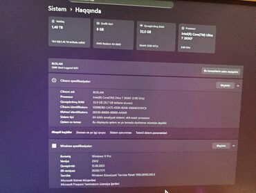 - Yaddaş: 1.40 TB (SSD/HDD toplam, ekranda göstərilən tutum)