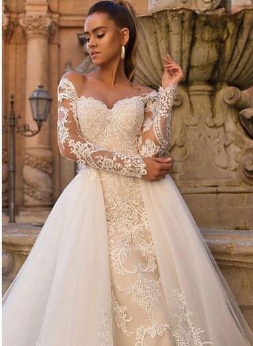 Ankarada yerləşən eksklüziv butikdən gəlinlik Ölçü: S, 1 dəfə geyinilib, ideal vəziyyətdədir. Orijinaldır, alış qəbzi mövcuddur. 🎁 Komplektə daxildir: — 2 ədəd fəta (uzun və qısa) — parça çanta 💰...