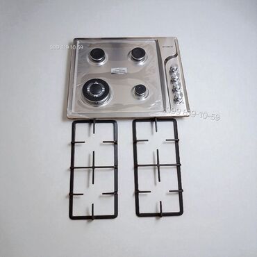 Öztürkler qaz paneli - 4 ocaq gözü: 1 böyük, 2 orta, 1 kiçik brülər - Paslanmayan polad səth, klassik gümüş rəng - Sağ tərəfdə idarəetmə paneli: 4 ədəd fırlanan mexaniki düymə - Döküm/metal qəfəsl...