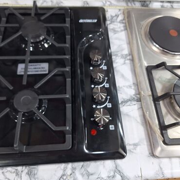 Yerləşdirilən məhsul: Quraşdırılan kombinə tipli ocaq paneli - 60 sm emal örtüklü qara panel ve metalık reng - 4 gözlü: 3 qaz ocağı + 1 elektrikli və 4 gözüde qaz olan - Qaz gözləri: böyük, orta v...