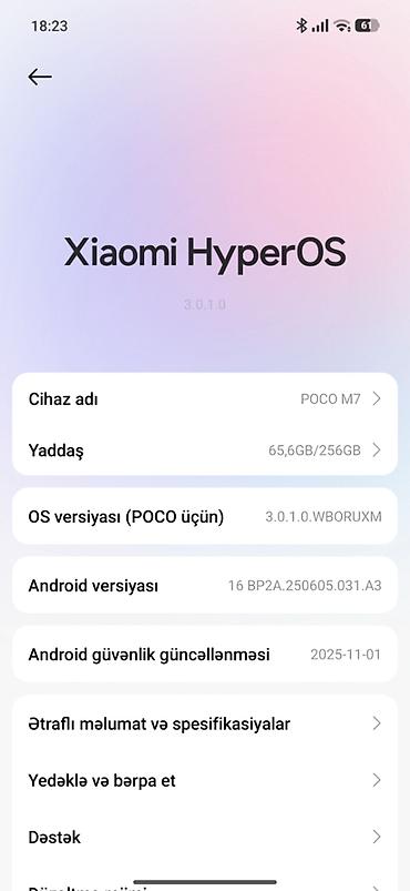 Salam Aleykum: Poco M7 8/128 GB Satıram. Telefonu 18.12.2025-ci il tarixində almışam. Demək olar bir ayın telefonudur. Problemsizdir. Qutusu, original adapter, antiudarı və kabrosu var. Xahiş edire...
