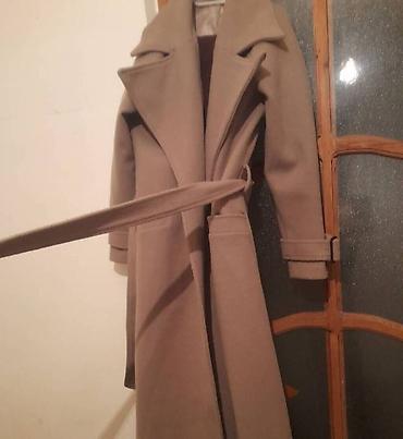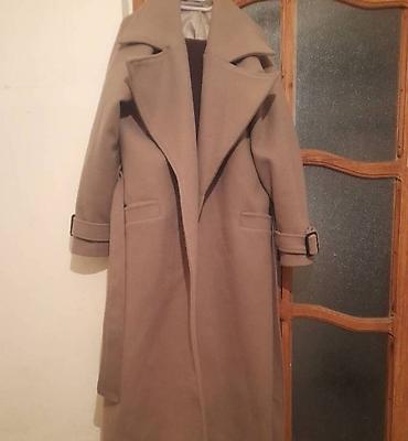 Uzun palto L,XL .bej . seliqeli geyilib .Saga cekin bir nece etrafli cekilibvatsap