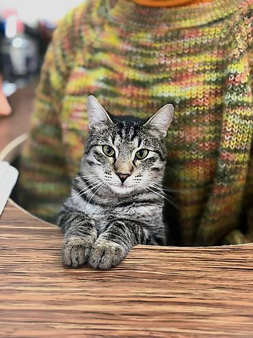 Boz rəngli ev pişiyi – zərif, qısa tüklü, sarımtıl gözlü. 4 aylıqdir. Yeknəsəq boz kürkü, incə quruluşu və uzun quyruğu ilə seçilir. Boyunluq taxmağa öyrəşib. Ev şəraitinə uyğun: qum qabına gedir, ...