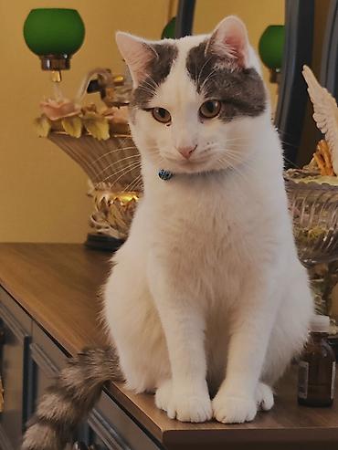 Sevimli boz-ağ bala pişik - Yaş: təxminən 4 aylıq - Rəng: boz kürk, ağ pəncələr və sinə, üzündə ağ maska - Xasiyyət: oyunbaz, mehriban, insanla ünsiyyəti sevir - Aktivlik: oyuncaqlarla oynamağı xo...