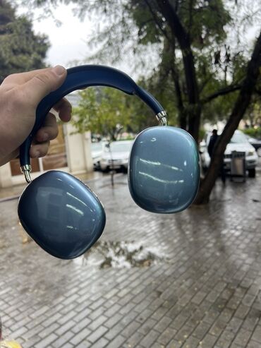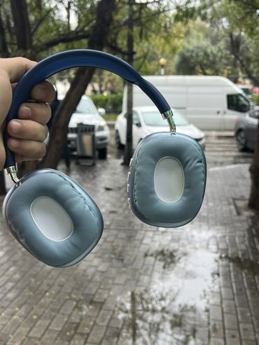 Bluetooth qulaqcıq – over‑ear dizayn - Rəng: göy başlıq, gümüşü qulaq qabları, metal keçidlər - Üst hissə yumşaq başlıqla rahat oturuş üçün hazırlanıb - Böyük ölçülü yastıqlar səsi yaxşı izolə edi...