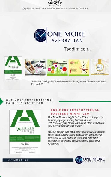 paınless night glu transdermal dalğa texnologiyası ilə tərkibi vitamin və minerallarla zəngin otlar ilə bir araya gətirilmiş medikal bir vasitədir. Günümüzdəki çətin həyat şərtlərində 98% müştəri məmnuniyyətinə sahib, hardasa hər alıcının möhtəşəm nəticə ala bildiyi, dünyada birinci marka olan möhtəşəm bantlardır. Hava kirliliyi, yolxucu xəstəliklər, yanlış qıdalanma, hazır paketlənmiş qidalar, stress, yuxu problemləri, zərərli şüalar, hərəkətsiz yaşamın orqanizmimizə verdiyi fəsadların yanlız bir band ilə həll olacağını düşünün. Paınless night glu minlərlə insanın sıxıntısında çox gözəl nəticələr vermişdir.