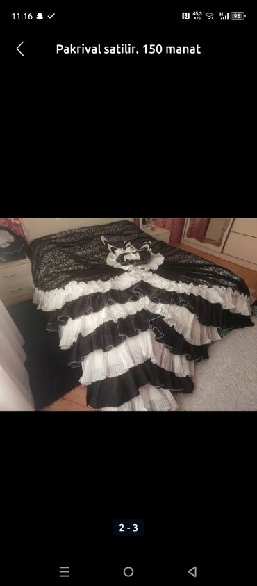 Yataq örtüsü böyük ölçü baha alınıb.2:80 uzunluq 2:80 eni.Yeni kimidir çox az istifade olunub.50 manat