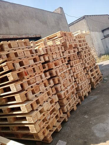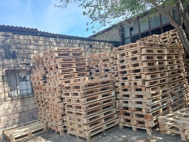 Taxta Euro paletlər - Material: möhkəm taxta - Konstruksiya: iki tərəfli forklift girişli, üst və alt taxta lövhələr, ara bloklarla möhkəmləndirilmiş - Ölçü: standart Euro palet formatı (təxmini 1...